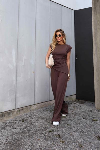 O conjunto Mari é feito em moletinho leve, com modelagem moderna e detalhe franzido na blusa valorizando a silhueta. Tamanho único 38 ao 42.