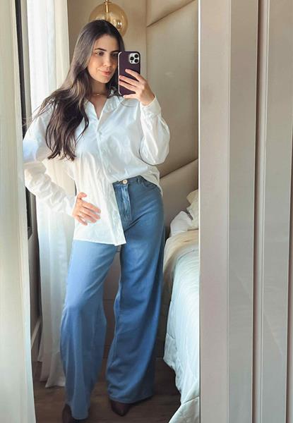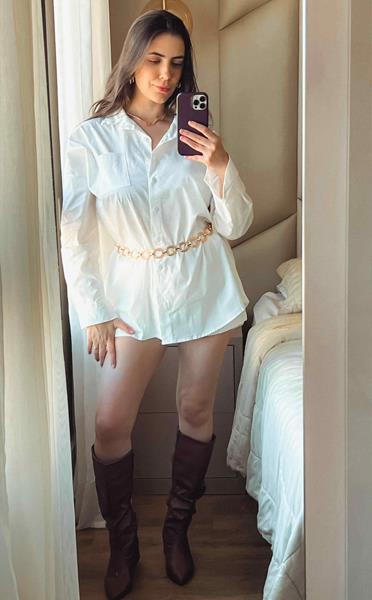 Maxi camisa básica e versátil. Confeccionada no tecido tricoline com algodão, botões funcionais na vertical e punhos. O bolso lateral adiciona um detalhe sútil e refinado a peça.